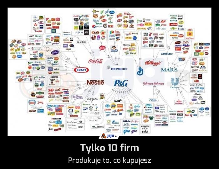 Kilka korporacji kontroluje sprzedaż niemal wszystkich produktów