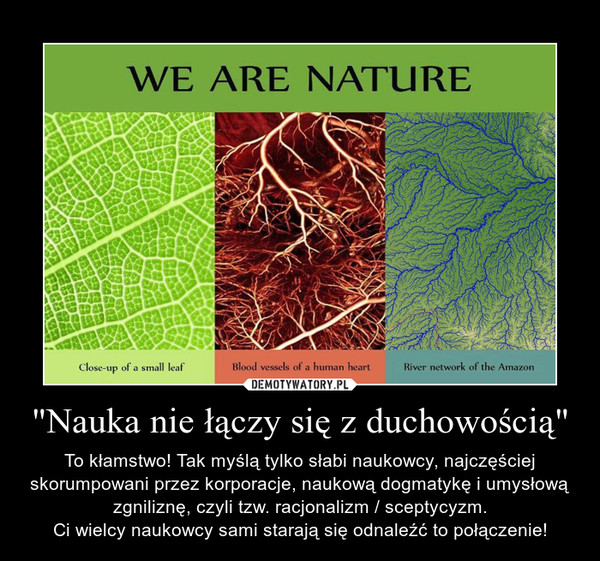 Przede wszystkim, jednym z wielu filarów tego systemu są podziały. Staramy się wszystko i wszystkich dzielić, zamiast łączyć. Na tej zasadzie jest rozdzielona nauka, która nakazuje nam patrzeć na świat poprzez pryzmat racjonalizmu i ateizmu, jak i duchowość.