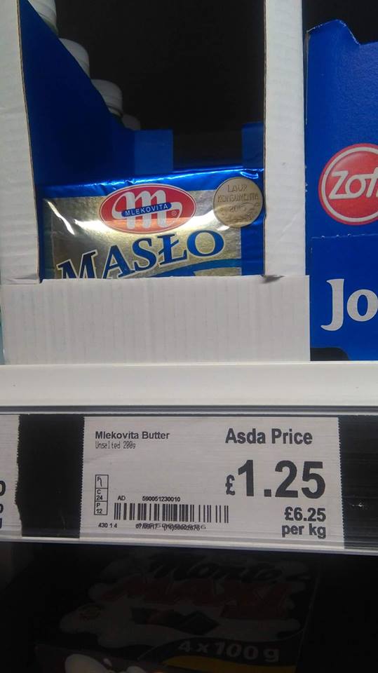 Co rusz ktoś pisze, że udało mu się kupić masło polskiego producenta w Wielkiej Brytanii na przykład po 1,20 funta, co w przeliczeniu daje nieco ponad 6 złotych. Dziwne, nieprawdaż? Poniższą fotografię zrobiłem ja sam.