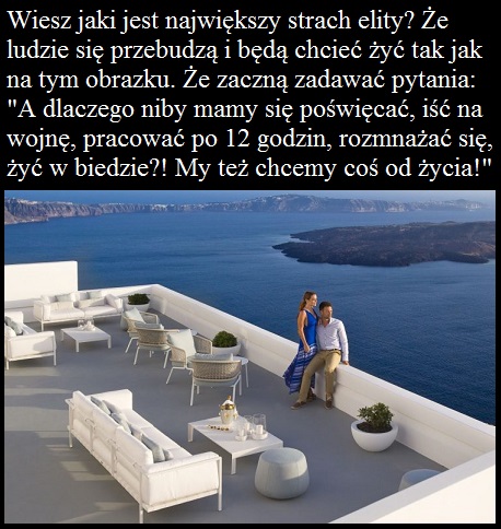 A wielu z nas ma to „zablokowane”. Wiele „doktryn niewolników” wmawia od kołyski nam, że nam się nie należy. Że prędzej wielbłąd przejdzie przez ucho igielne, niż bogaty dostanie się do nieba. Że to taka karma i nagrzeszyłeś w poprzednim życiu. Że takie są prawa ekonomii i niewidzialnej wolnego rynku, a jak komuś się nie udało, to tylko jego wina. Że człowiek lewicy czy tam prawicy (jeden chuj) to człowiek ciężkiej pracy. Że ciężka i „uczciwa” praca na etacie jest najwyższą wartością. Są to doktryny niewolników, stworzone po to, by owce nie chciały za dużo i by zarabiając 3500 na rękę, pozwalały elitom gromadzić ich biliony.