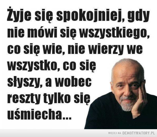 Pewność i wiedza, których pożądają masy, będąca przeciwieństwem mórz hipotez, domysłów i teorii, nie rozwiąże więc Twoich problemów, bo nie mają takiej mocy. Ty masz taką moc, działając w świecie realnym. Nie będzie „boskiej interwencji”, niezwykłego oświecenia, manny z nieba czy innych gruszek na wierzbie. Bo nie o to w tym chodzi. Obserwowałem kiedyś taką rodzinę z mojej dawnej pracy. On zarabia te 4500, ona też. Mają kredyt hipoteczny, bo każdy go bierze, mają dzieci i ślub, bo tak wypada. Po pracy cztery piwka w domu, mają Passata więc w niedziele sobie pojadą do galerii handlowej. Owszem, ponarzekają że złodziejstwo, że zarobki nie takie, i to wszystko. Żyją sobie z dnia na dzień, nic nie kumając i niczego specjalnego od życia nie oczekując. Na emeryturze będą mogli powiedzieć, że dobrze przeżyli swoje życie. I oni są paradoksalnie szczęśliwsi, niż wielu „poszukujących sensu”.