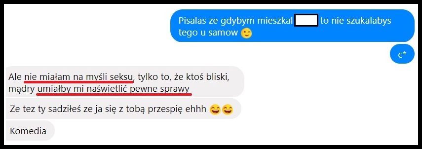 Kobiecie niedojrzałej, która jest dzieckiem zamkniętym w dorosłym ciele, zawsze będzie coś nie tak. A to woda za zimna, a to za ciepła. A to pociąg nie taki, bo zamiast jazdy 10 godzin i 10 minut, jedzie przez 10 godzin i 20 minut. A to papier toaletowy jest w słoniki, a nie w kwiatki, misiu, no misiu no, ty draniu jeden! I wtedy taki przeciętny facet rzeczywiście może mieć tego wszystkiego dość. I może rzeczywiście sobie myśleć, że „po co mi to wszystko”. Skoro to samo może mieć z dobrą i rozumiejącą przyjaciółką („seks przyjaciele” i tym podobne relacje), w klubie, z tindera lub z prostytutka. I to bez tych całych fochów, szamotaniny, pretensji, robienia afer o byle gówno. No, drodzy panowie i drogie panie, wchodzimy na wyższy level. Jednak wypadałoby zejść z drzew. 😉