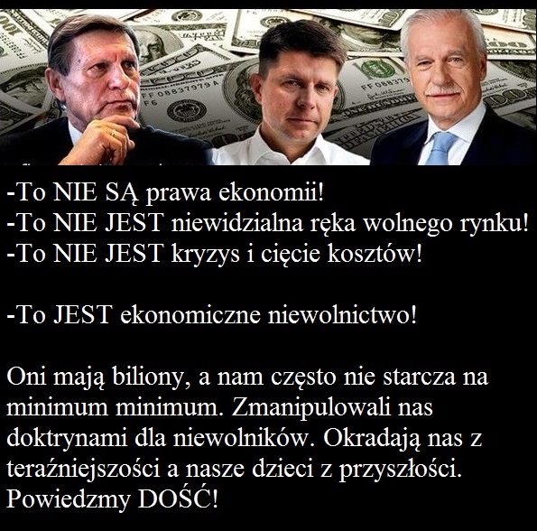 To, o czym od lat alarmują organizacje takie jak The Zeitgeist Movement, lub piszą autorzy tacy jak ja, powoli i z trudem przebija się do debaty publicznej. Niedawno w czasopiśmie „Polityka”, kojarzonym głównie ze środowiskiem SLD, pojawił się niebylejaki materiał. Jest to wywiad z profesorem Harrym Cleaverem na temat tego, że neoliberałowie zmienili świat w gigantyczny obóz pracy. To bardzo dobry znak. To musi być publikowane i dyskutowane. Jeszcze w latach ’90 za takie twierdzenia z automatu traciło się np autorytet. Obecnie przełamujemy ten liberalny beton.