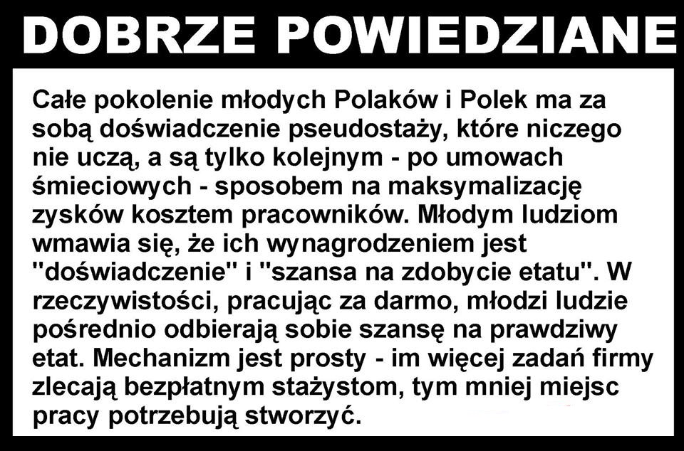Choć anegdota, jaką poniżej przeczytasz, jest żartem, tak zwaną „internetową beką”, to temat ten jest bardzo ważny. To nasze wyjście z mentalności ofiary, że nam się nic nie należy od życia, a prawo do kosztowania owoców tegoż życia mają tylko ci „idealni” i „bogaci”. To fakt, że przestajemy wierzyć w głupie doktryny, takie jak „niewidzialna ręka wolnego rynku”, bo dostrzegamy, że pod płaszczykiem tych doktryn, oni się bogacą naszym kosztem. Okradli kolejne pokolenie Polaków z owoców ich pracy. Przy czym drapieżny kapitalizm w stylu Balcerowicza, Tuska i Petru zrobił to z oszałamiającą precyzją.