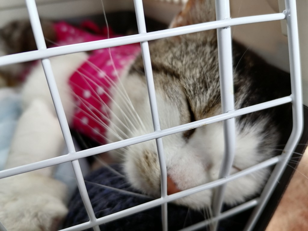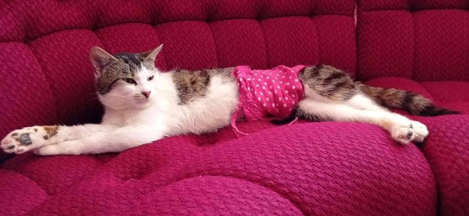 Uratowaliśmy ją z naprawdę ciężkiej sytuacji, przeszła 1 operację i 1 zabieg. Było to usunięcie macicy i martwych kotków (sterylizacja aborcyjna). Gdybyśmy wtedy wspólnie nie zareagowali, to na drugi dzień by nie żyła, umierając straszną śmiercią, w wielkich bólach. Teraz, po 4 tygodniach jeżdżenia do weterynarza dzień w dzień, ma już okres rekonwalescencji.