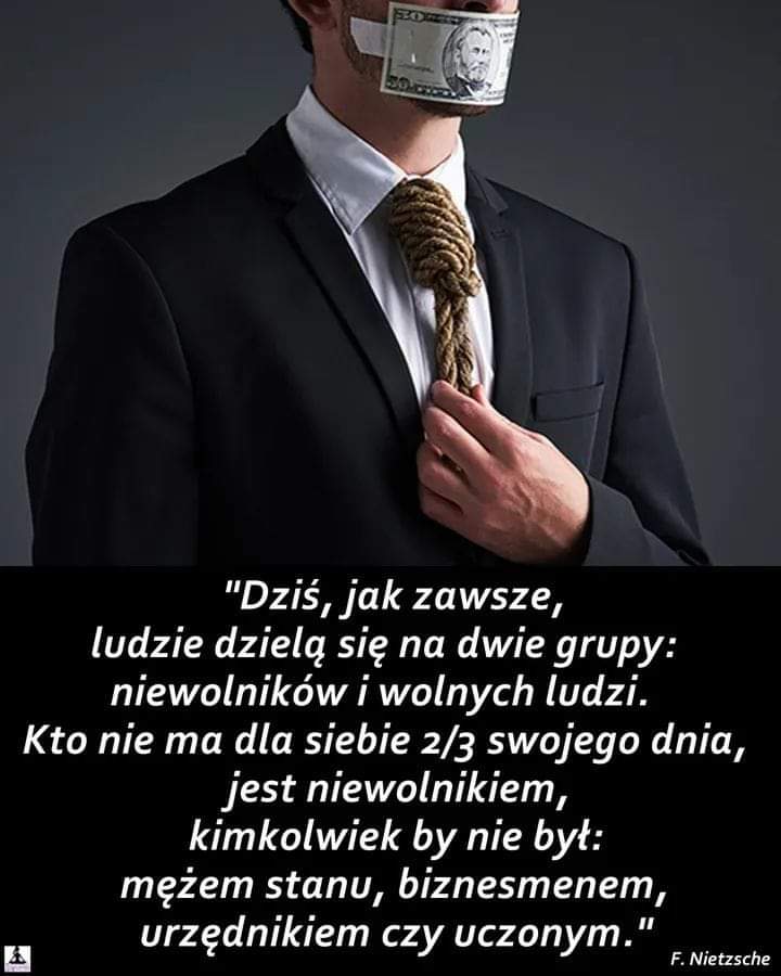 Dodajmy jeszcze, że osoba pracująca w biurze i zarabiająca 6500 zł na rękę, mająca kredyt na mieszkanie i auto, wcale nie jest osobą bogatą, ani nawet klasą średnią, za którą zapewne się uważa. To osoba biedna, ale mająca trochę więcej, niż cała reszta biedaków. Bogaty jest ten, kto za gotówkę, bez kredytu, może zapewnić sobie tę najbardziej podstawowe potrzeby, takie jak żywność, opłaty, samochód, mieszkanie.