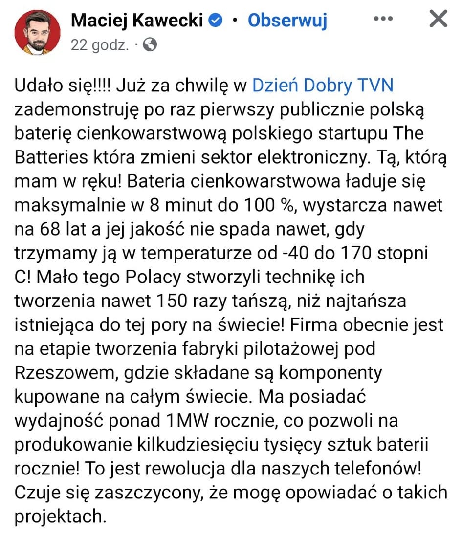 Polacy stworzyli najlepszą baterię wszechczasów, ale nikt nie chce jej produkować