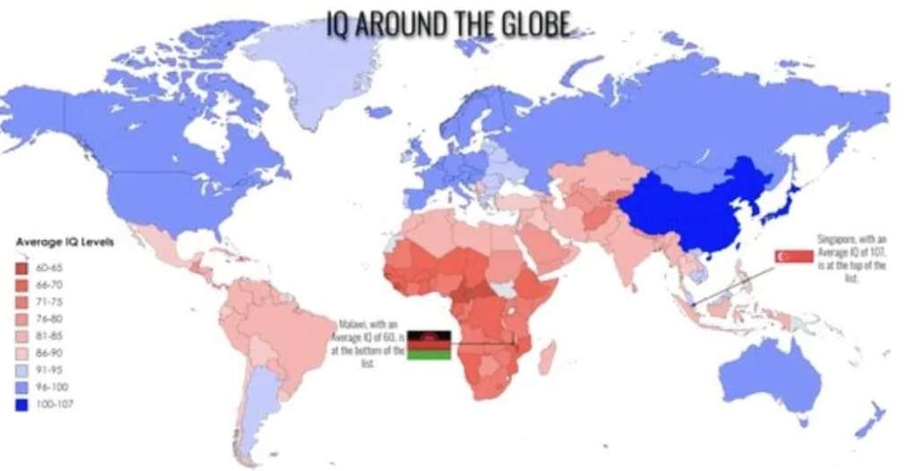 Mapa jest kontrowersyjna i niezbyt poprawna politycznie, gdyż wyraźnie pokazuje, które grupy ludzkości są bardziej inteligentne, a które mniej. To przeczy nowomowie liberałów, że inteligencja człowieka nie zależy od miejsca pochodzenia. Tak mówi także oficjalna nauka, która jest ściśle podporządkowana liberalnym elitom.