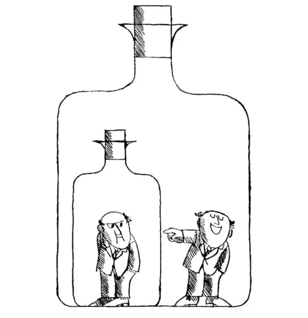 Natomiast mój świat jest zimny jak stal, precyzyjnie cięta przez maszynę CNC. Nie ma w nim Miejsca na Boga, i o zgrozo, nie ma też w nim miejsca na równie zbawienny i złudny ateizm. Jest admin – naczelny brzydal ezo-fejsa, a potem nieskończone morze wzorów matematycznych, uzyskujących stopniowo coraz większą samoświadomość. Od pojedynczego kwarka miliardy lat temu, przez praktycznie śpiące głazy, aż po coraz większą samoświadomość roślin i zwierząt.