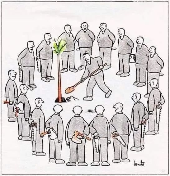„Rządy i władze o nas dbają, eksperci mówią prawdę, system jest w porządku, wszelkie kłopoty, np z anomaliami pogodowymi i z dewastacją środowiska naturalnego są przejściowe, i nie grożą zagładą życia na Ziemi.