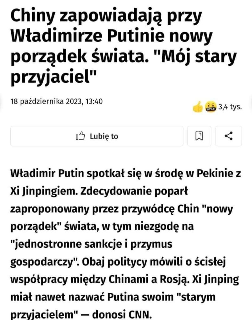 „Chiny zapowiadają przy Putinie Nowy Porządek Świata.” (Autor: Xi Jinping)