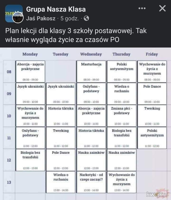 Zmiany w szkolnictwie w tym systemie na swiecie to zawsze bedzie malowanie trupa, nawet w Finlandi. Zadna oficjalna szkola na swiecie nie wprowadzi programu w ktorym bedzie uczyc rzeczy, ktore zakloca hierarchie klasowa i asymetrie informacji wladzy wobec podwladnych nawet w systemie w ktorym nieznajomosc praw nie zwalnia z odpowiedzialnosci, a jezyk potoczny nieraz miesza sie z prawniczym co utrudnia komunikacje miedzy klientem, a prawnikiem. PO juz sie skompromitowala gdy wspolzalozyciel platformy Andrzej Olechowski przyznal u Jolanty Pienkowskiej, ze 4 razy Tak to byly tylko cwiczenia zolnierzy, na co Jolanta Pienkowska odpowiedziala „Panstwo sobie pocwiczyliscie w 2004 roku na zywym organizmie?” „Pan sobie chyba ze mnie zartuje?”, ale minister Nowacka zabraniajac prac domowych wprowadzila „projekt odwilz” w skostnialym systemie mimo, ze to jak na nie tylko polskie warunki opcja niemal nuklearna (minister Nowacka mowila w wywiadzie, ze przeprowadzila ok 100 rozmow na ten temat). Ten projekt odwilz to kamien milowy pomagajacy odzyskac rownowage przez uczniow. Trudno porownac do ministra Czarnka z Kola (tak jak Gdansk polnocne gniazdo dla dzieci in vitro z projektu lucyfer wykorzystane do przemian Solidarnosci by blyszczala w Europie i na swiecie z JP II jako baza do identyfikacji narodowej dla narodu, ktory przegral wojne swiatowa z kretesem a pozniej sprzedany Stalinowi) militarnego „hot zone” dzieci in vitro psyop, ktory jako dziecko psychologicznej operacji promowanego przez znajomych jego wujka ksiedza, zaciemniony „janiepawleniem” epatowal patriotyzmem i religijnoscia jako fundamentem tozsamosci. Kaczynski i JPII z prawdziwym patriotyzmem i obrona tradycyjnych wartosci maja wspolnego tyle ile korporacjonizm Jana Pawla II z duchowoscia.