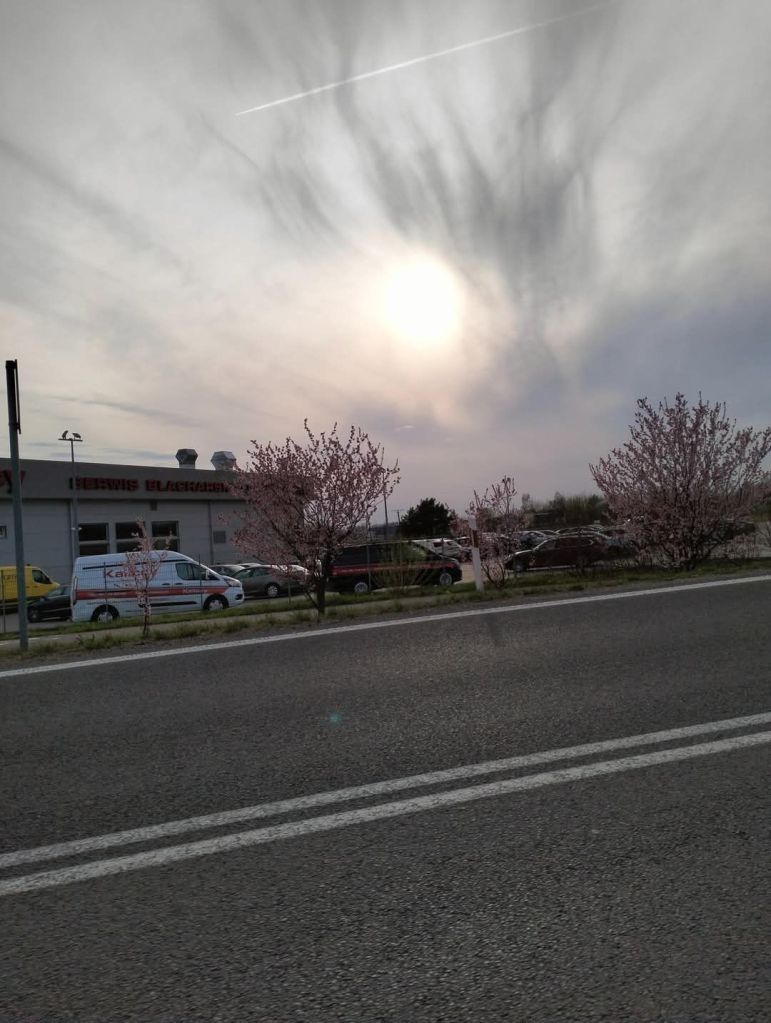 Coś dziwnego dzieje się ze Słońcem! Czy ludzie tego nie widzą!? Już nie jest ono przyjemnie żółto-pomarańczowe, jak jeszcze 20 lat temu. Teraz po pierwsze jest jaskrawe i jasne, jak równie fatalne żarówki LED, a po drugie – światło wokół niego rozprasza się i „zlewa” z przylegającym do niego niebem. Finalnie daje to rezultat nieprzyjemnego, oślepiającego światła z tarczy słonecznej, która jest znacznie większa, niż tarcza Słońca, gdy nie ma oprysków („Słońce na pół nieba”).