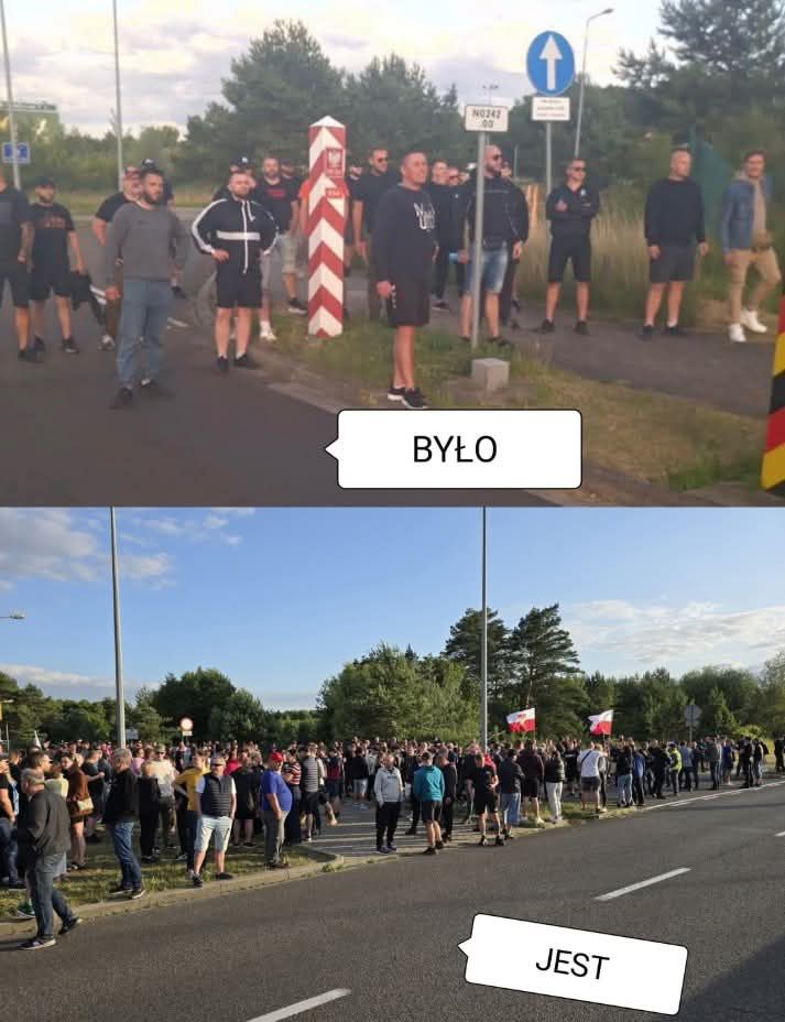 Wcześniej było po kilka, kilkanaście, może trzydzieści osób. Teraz są to setki ludzi pilnujących granic przed przerzucaniem do Polski nielegalnych. Na przejściu granicznym w Rosówku pod Szczecinem było zgromadzonych aż 200 ludzi. Na jednym z przejść policja potraktowała naszych gazem, za nic.