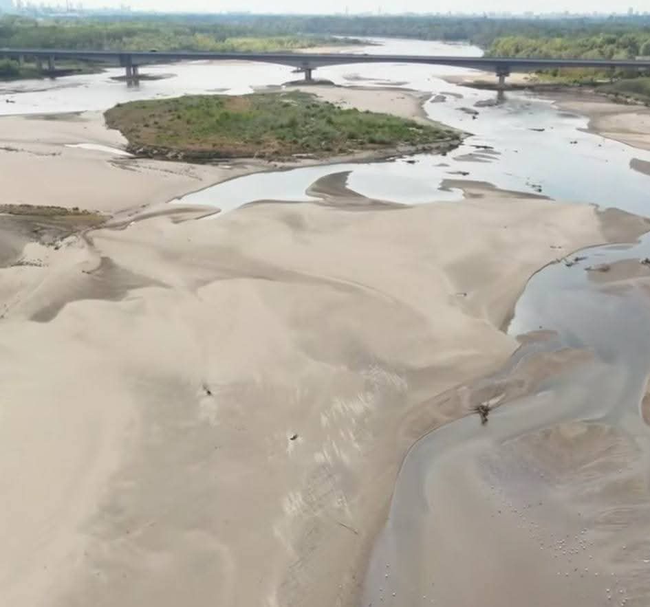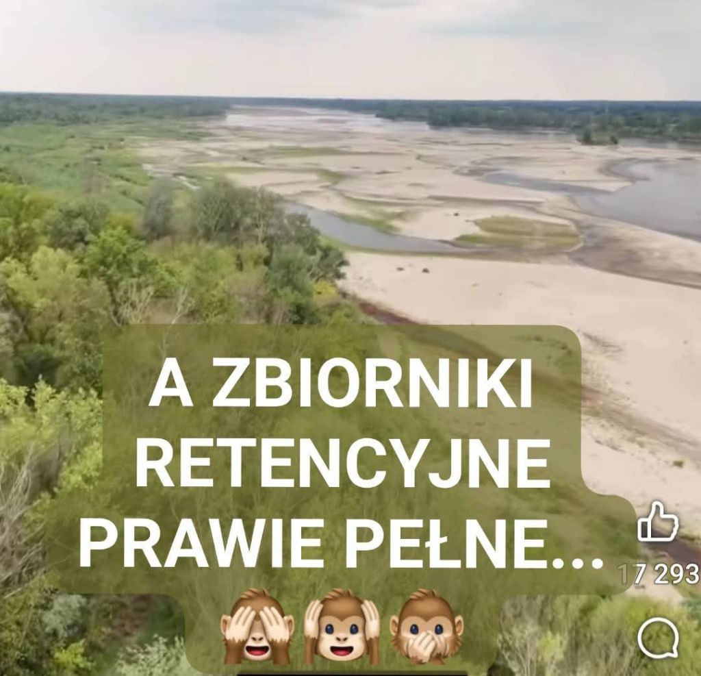 Tak wygląda Wisła w Warszawie (patrz zdjęcia poniżej). Koło mostu południowego na wodowskazach został pobity rekord wszechczasów z 2024 roku – zaledwie 15 (!) centymetrów. Choć wiele dni jest chłodnych, pochmurnych, ponurych, z czasami padającym deszczem – to wody spada tak mało, że nie wystarcza dla utrzymania poziomu rzek i innych wód. Susza, w tym ta hydrologiczna, trwa z niewielkimi przerwami już dziesiąty rok. W dalszej perspektywie, Polska będzie tracić lasy i stepowieć. (Zdjęcie z syntetycznymi, obrzydliwie wyglądającymi chmurami, oczywiście niepowiązane).