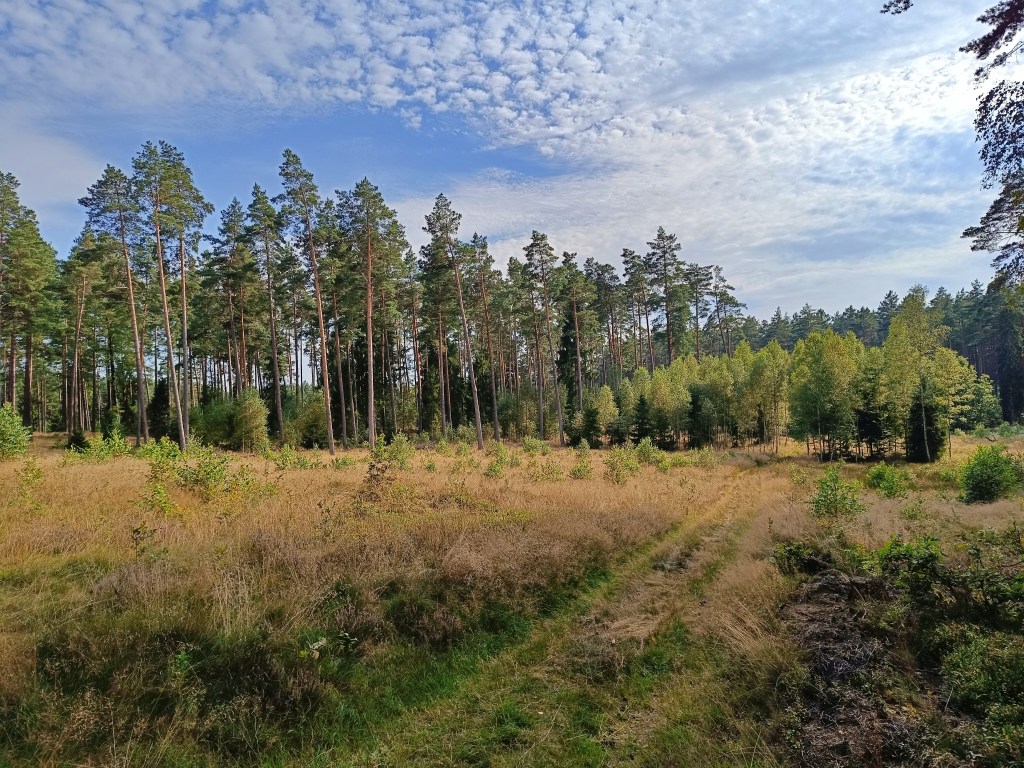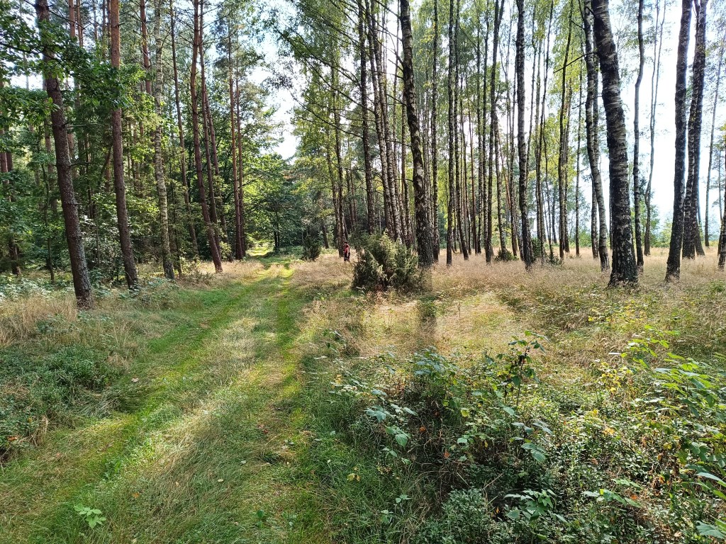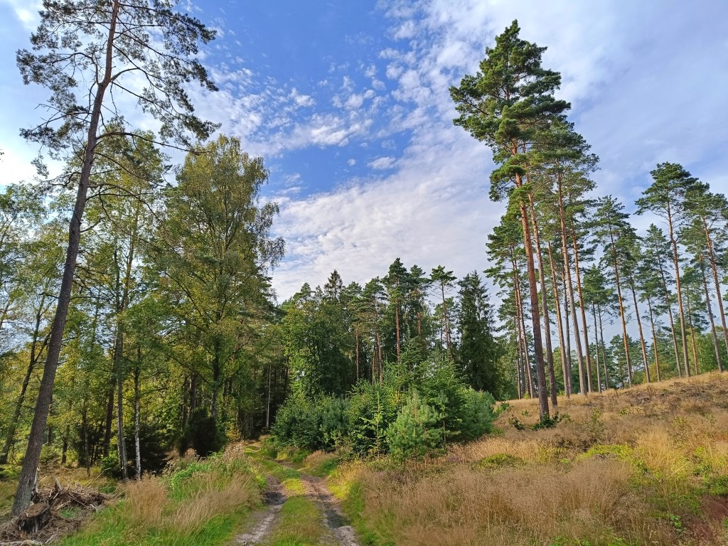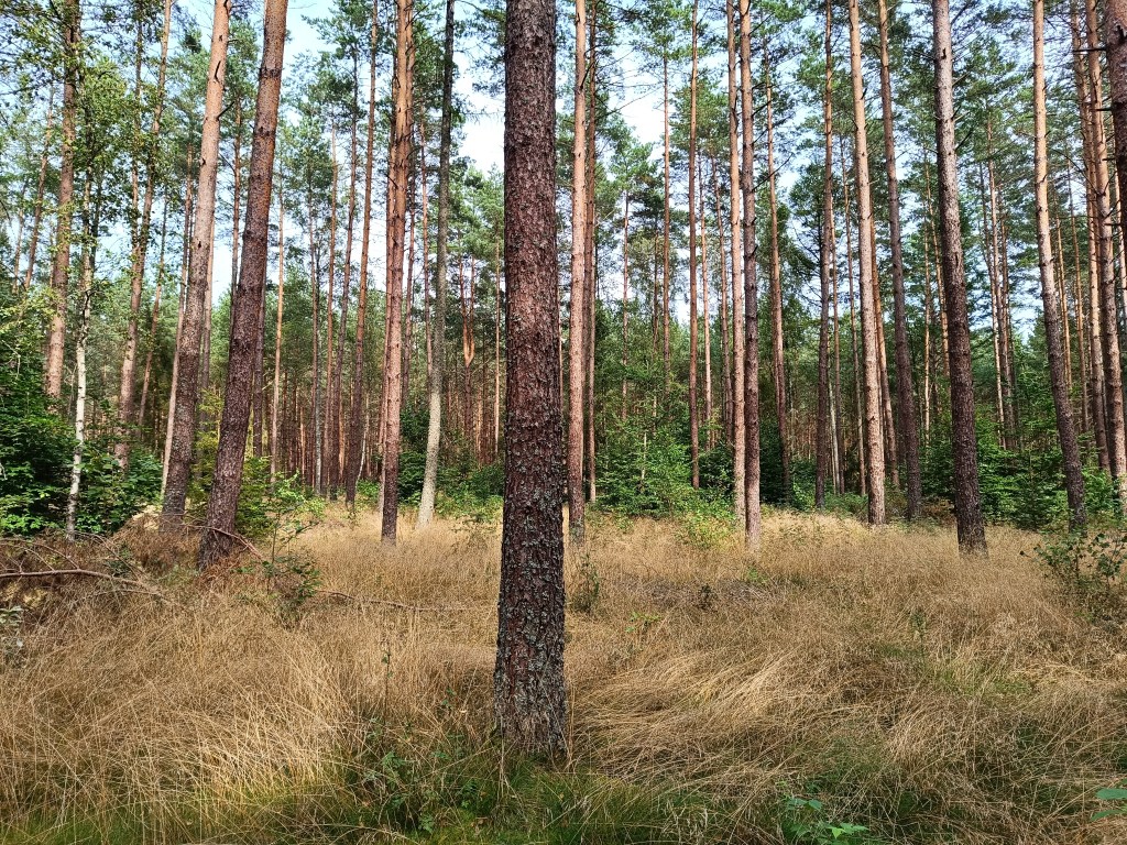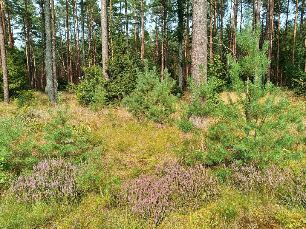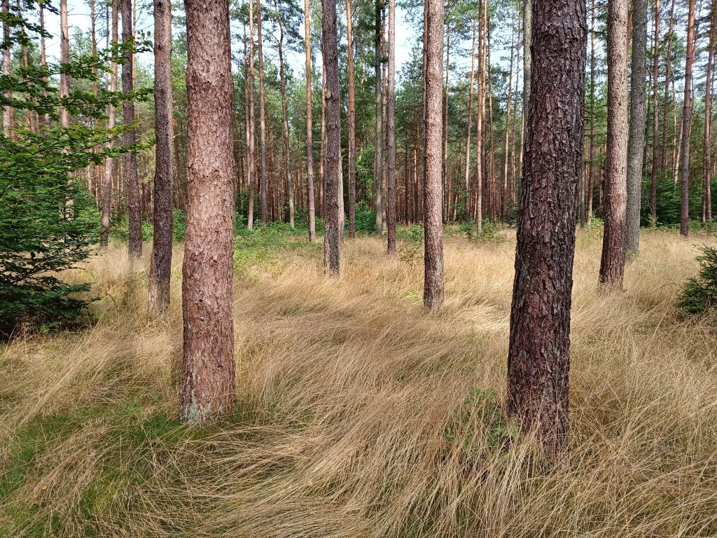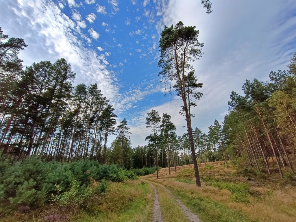 Przez zupełny przypadek znaleźliśmy fajną miejscówkę na tegoroczną jesień. Z tym, że to zupełnie inny las, niż te znane nam z najbliższej okolicy. Iglasty i iglasto-mieszany, z pożółkłymi trawami, wrzosami, grzybami z rodziny gołąbków. Roślinność znacznie bardziej zróżnicowana. Typowy, dziki las z przewagą drzew iglastych. Różnych żyjątek w stylu pająków także mnóstwo. Nazbieraliśmy nieco kurek. Układ bocznych ścieżek leśnych dużo prostszy, bo prostopadły i prostopadło-mieszany.