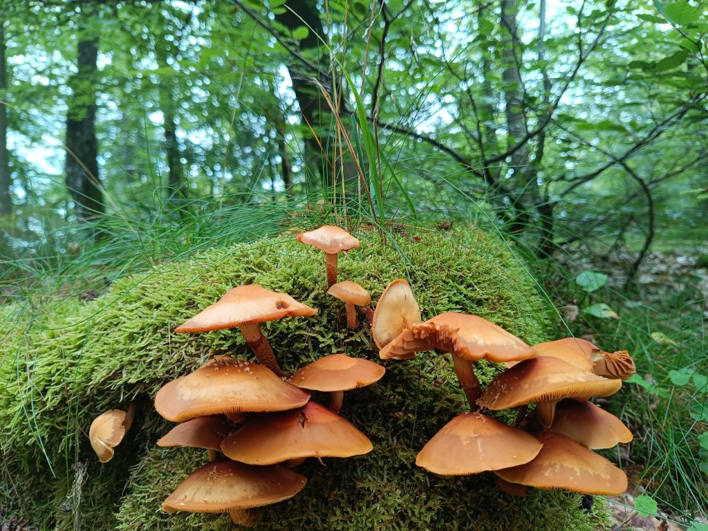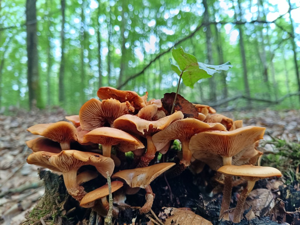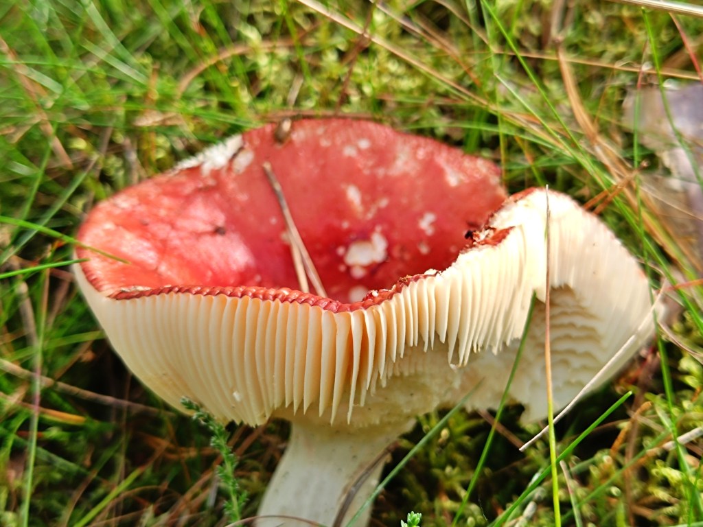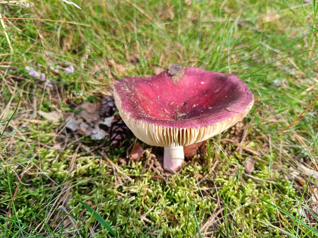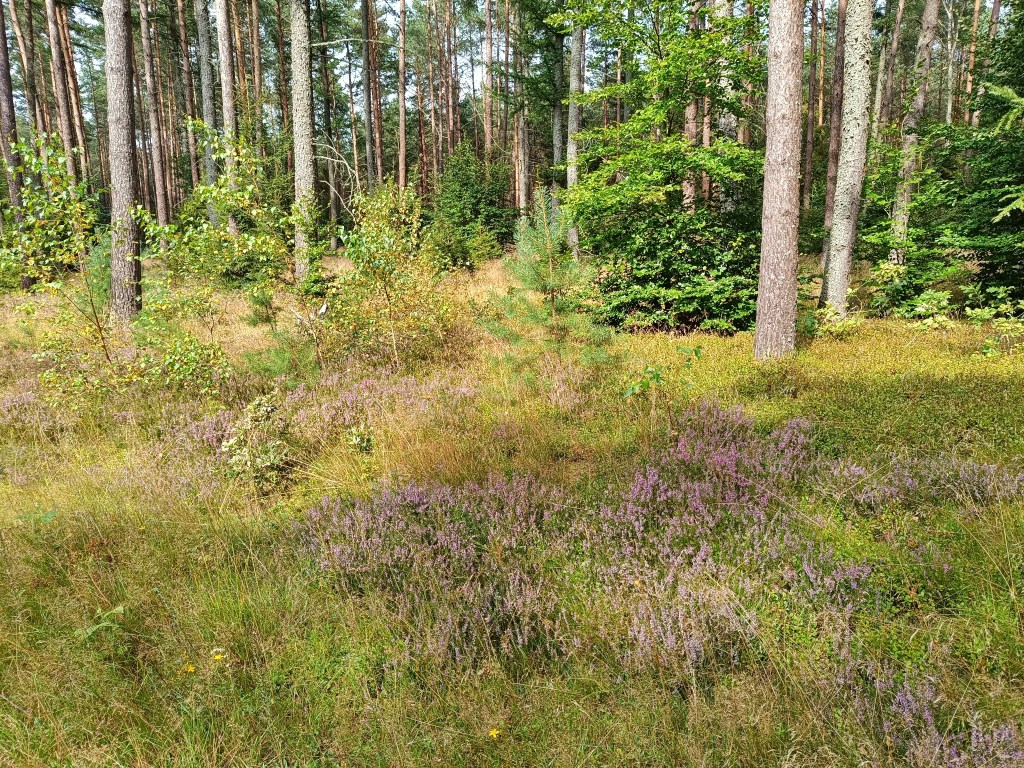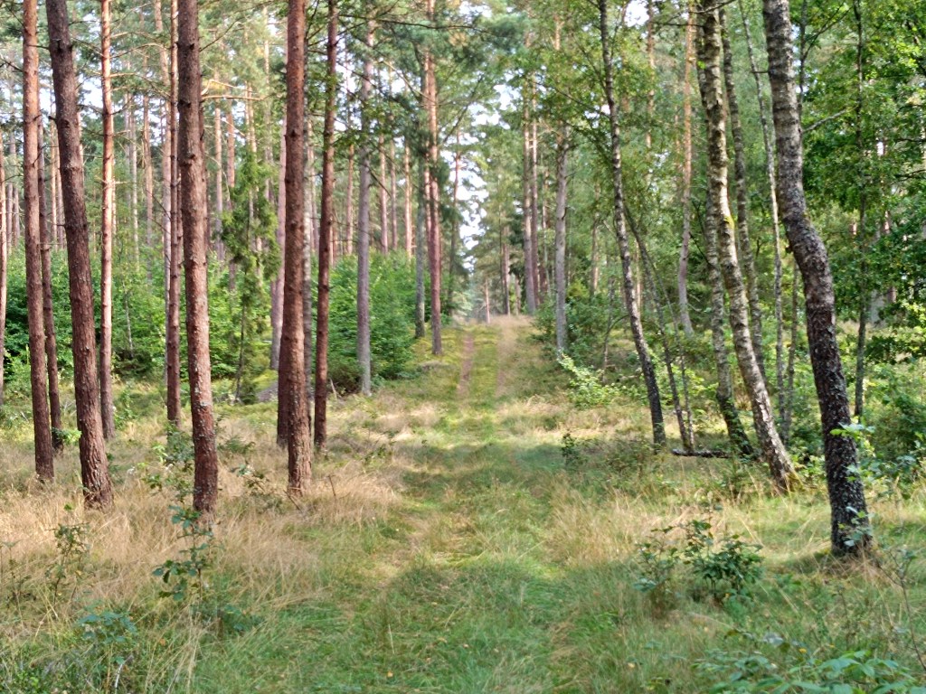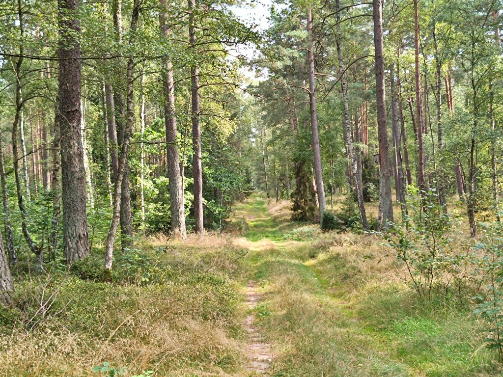 Przez zupełny przypadek znaleźliśmy fajną miejscówkę na tegoroczną jesień. Z tym, że to zupełnie inny las, niż te znane nam z najbliższej okolicy. Iglasty i iglasto-mieszany, z pożółkłymi trawami, wrzosami, grzybami z rodziny gołąbków. Roślinność znacznie bardziej zróżnicowana. Typowy, dziki las z przewagą drzew iglastych. Różnych żyjątek w stylu pająków także mnóstwo. Nazbieraliśmy nieco kurek. Układ bocznych ścieżek leśnych dużo prostszy, bo prostopadły i prostopadło-mieszany.