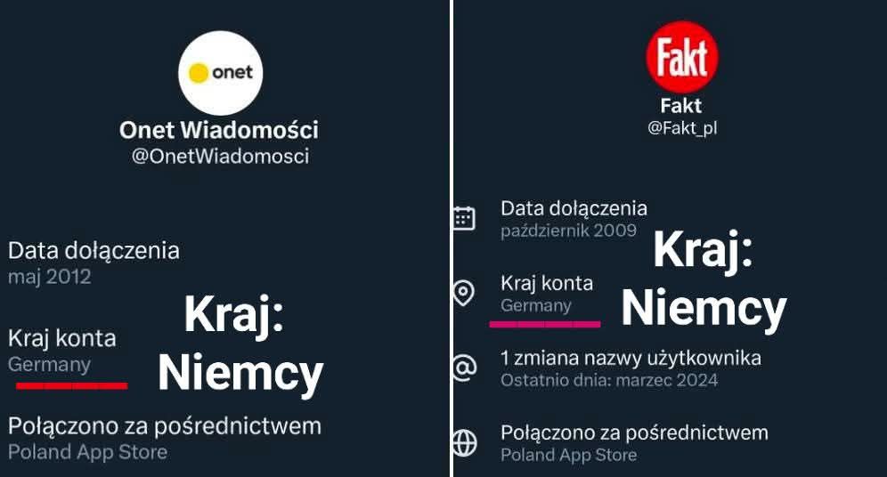 Profile na X Onetu i Faktu nadają z terenu Niemiec