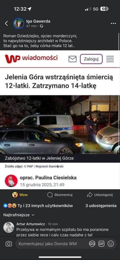 Nie mówcie mi o szoku, o panice, o chaosie. Kłamstwo po fakcie, próby budowania alternatywnej wersji wydarzeń, pytania o konsekwencje, to nie są reakcje osoby „oderwanej od rzeczywistości”. To jest świadomość czynu, brutalna, zimna, przerażająca właśnie dlatego, że obecna tak wcześnie. I nie, to nie rozwiązuje się jednym zdaniem: „bo miała ciężki dom”, to jest najtańszy wytrych współczesnej psychologii usprawiedliwiającej wszystko, a już szczególnie zwyroli, zboków i sprawców. Świat pełen jest ludzi, którzy wychowali się w piekle, w przemocy, w alkoholu, w krzyku, w kompletnym braku miłości, i jakość nie poszli szlachtować i zabijać. I jest też druga grupa: Ci, którzy mieli warunki, wsparcie, szanse, a mimo to wybrali zło. Środowisko ma znaczenie, ale nie jest jedynym bogiem Demiurgiem tej historii. Jest jeszcze coś takiego jak wybór i odpowiedzialność.