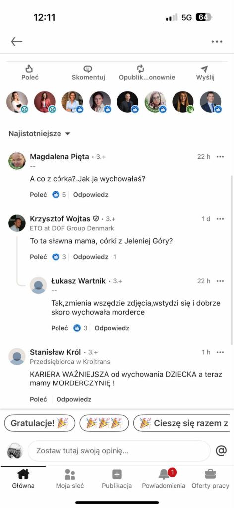 Narracja o „dwóch rodzinach dotkniętych tragedią”, lansowana przez niektórych komentatorów, brzmi ładnie w studiu telewizyjnym, ale w rzeczywistości jest fejkiem. Bo jedna rodzina dziś patrzy na puste łóżko, na zdjęcia dziecka, które już nigdy nie wróci, i wie, że pod ziemią leży ciało ich córki. Druga rodzina, jakkolwiek trudna by była ich sytuacja, myśli o strategii, o procedurach, o prawnikach, o tym, jak upudrować przyszłość sprawczyni. To nie są symetryczne dramaty, to są dwie zupełnie różne rzeczywistości.