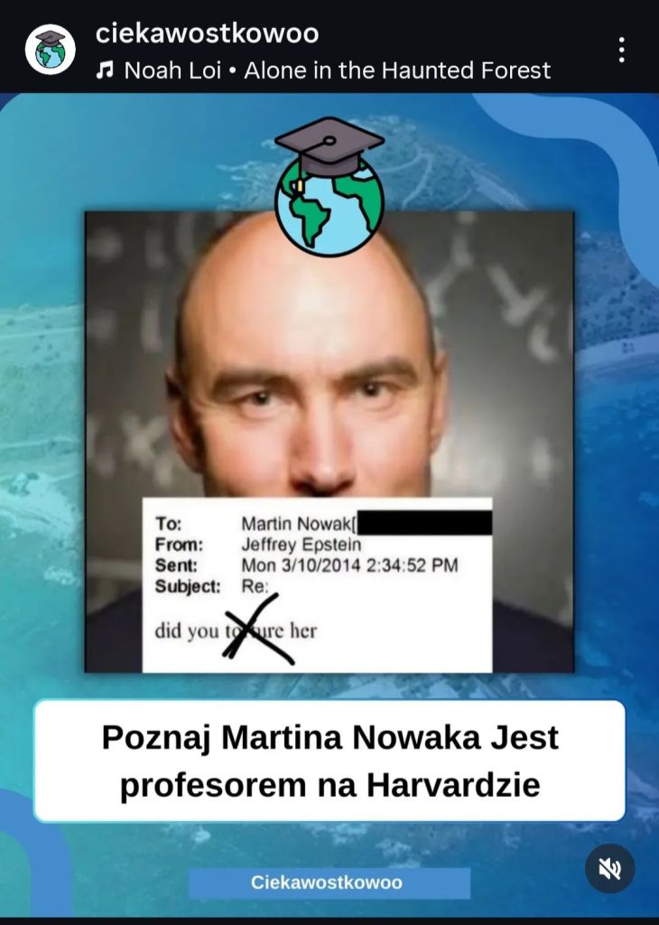 Cytat: „Z akt Epsteina wynika, że część młodych kobiet (dziewczynek) była rekrutowana w Europie Wschodniej, w tym w Polsce, a Polska stanowiła główny hub przerzutowy. Wszystko wskazuje na to, że w Polsce miała swoją siedzibę siatka rekrutacyjna oparta o „agencje modelek” i rekruterów ulicznych, którzy wyłapywali młode-ładne i oferowali im kokosy na Zachodzie. W szczytowym momencie średnio nawet 5 kobiet dziennie mogło odlatywać z Okęcia w stronę Wyspy Kokosowej.