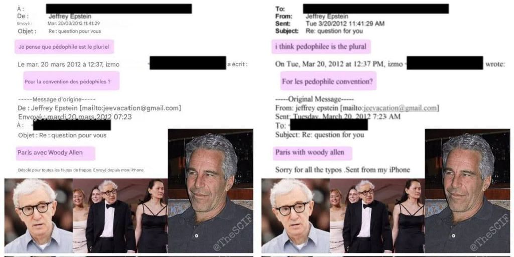 „Aktor Woody Allen jest wspomniany w nowych dokumentach Epsteina jako osoba, która wzięła udział w konwencji pedofilów w Paryżu.