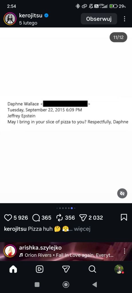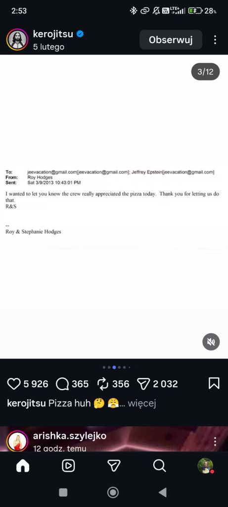 Afera PizzaGate? Pamiętam jak publikowaliśmy i dyskutowaliśmy na ten temat. Teoretycy spiskowi łączyli to z siecią restauracji „Comet Pizza”. To było akurat niesłuszne oskarżenie. Bo zamówienie „pizzy’, czyli dziecka, odbywa się w sieci posiadłości i na samolocie Epsteina.