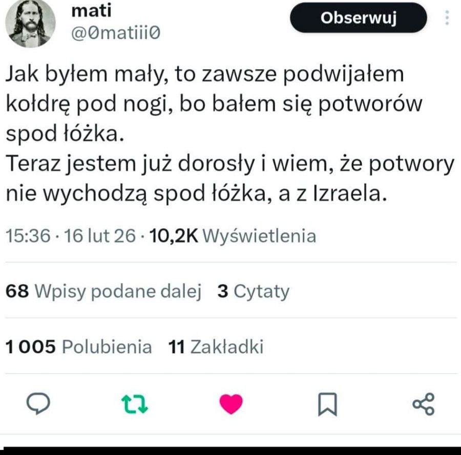 Nie mam redakcji, zaplecza ani sponsora, który przejmie ciężar, gdy grunt zaczyna się osuwać. Nie mam nawet moderatora do moderowania tysięcy komentarzy. Mam tylko Was i zaufanie, które budowaliśmy latami. Jeśli moje teksty dawały Wam poczucie, że nie jesteście sami w myśleniu, że ktoś jeszcze widzi rysy na fasadzie świata, to dziś ja mówię wprost: potrzebuję wsparcia. Każda darowizna to nie tylko pieniądz, to sygnał, że ta praca ma sens i że nie walczę w pojedynkę. Jeśli czujecie więź z tym, co tworzę, i możecie pomóc, będzie to dla mnie realne odciążenie w bardzo trudnym momencie. Możliwości wsparcia poniżej: