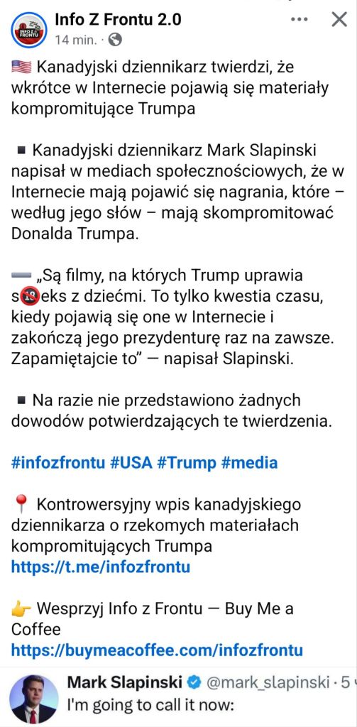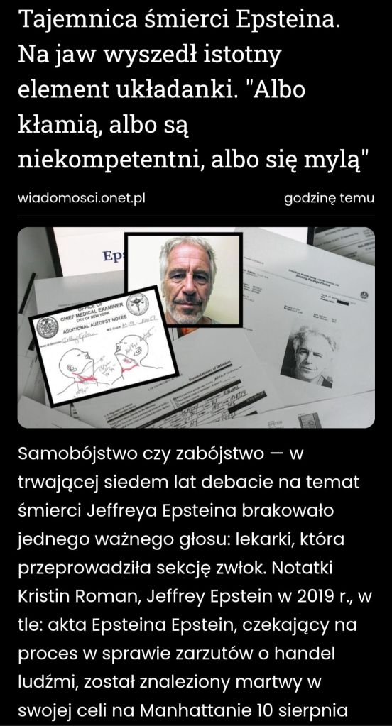 Tamtejsze śledztwo zatacza coraz szersze kręgi. Ja do sprawy być może jeszcze wrócę. Nie gwarantuję Wam tego na 100%, gdyż szczegóły są tak drastyczne i obrzydliwe, że przewyższają nawet sprawę Epsteina. I nie wiem, czy to w ogóle nadaje się do publikacji na mojej stronie. Ostrzeżenie dla nadwrażliwych osób o możliwym szoku psychicznym może już nie wystarczać – publikując takie rzeczy mogą mi zamknąć stronę.