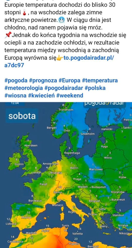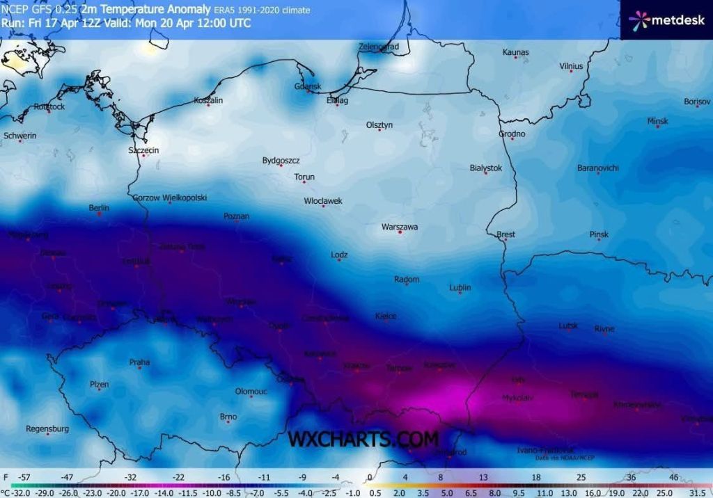 Tymczasem jak będzie wyglądać pogoda na majówkę ’26? Tutaj muszę przywalić z grubej rury. Na Polskę z północy idzie potężny niż polarny. Przyniesie on ujemne temperatury (nawet minus osiem stopni!), jak i potężne, momentami nawalne opady śniegu. Szczególnie silne będą u mnie na północy, i wraz z niżem będą wędrować stopniowo na południe kraju. Jeśli utrzyma się to dłużej, będzie to katastrofa o wymiarze klęski żywiołowej dla sadownictwa i niektórych innych branż rolnictwa.
